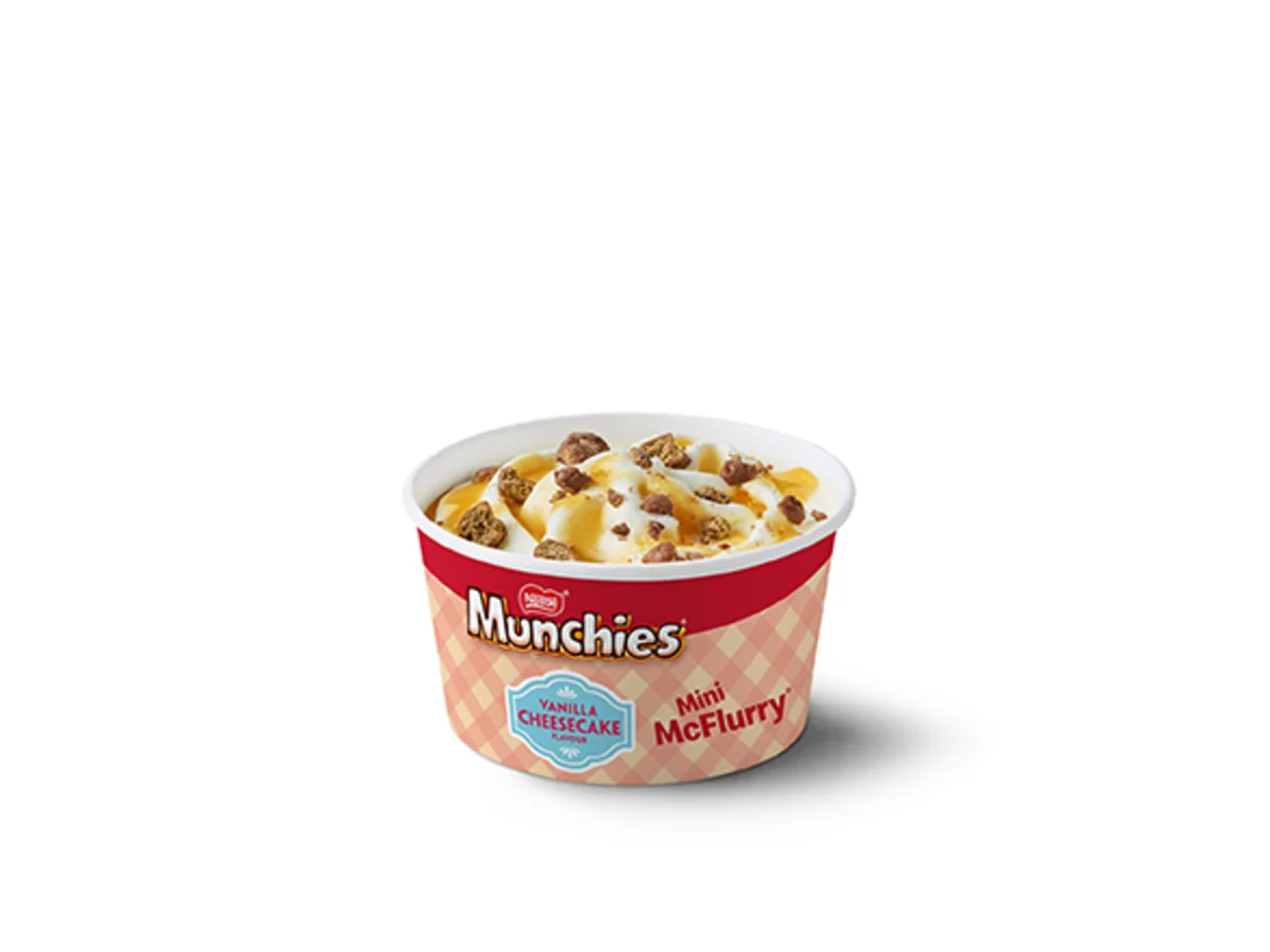 Soft dairy ice cream swirled with chocolate coated biscuit balls, topped with a cheesecake flavour caramel sauce.